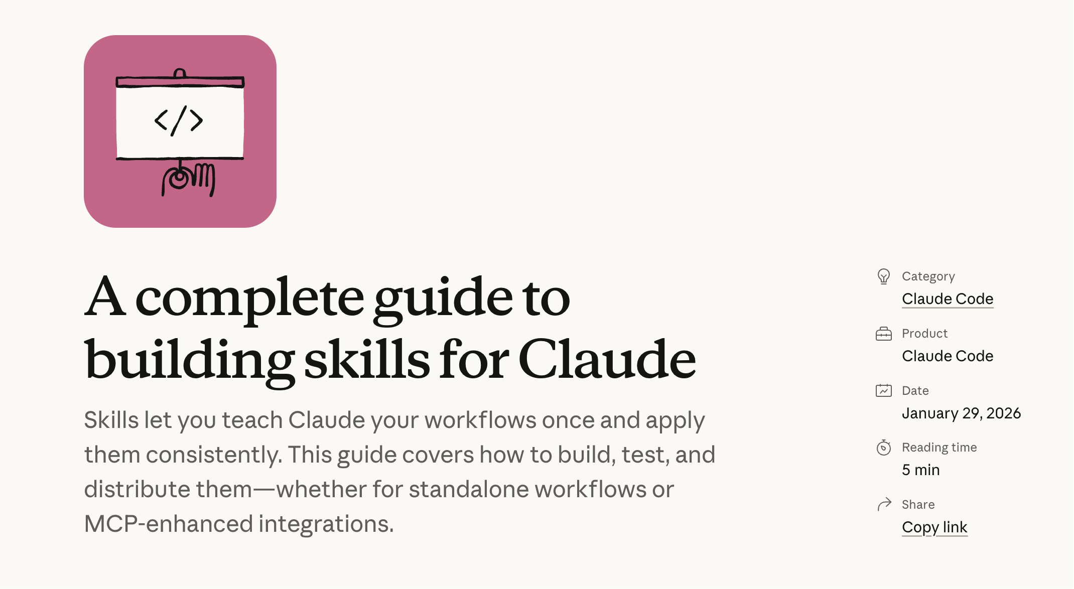 Anthropic 近期发布 32 页官方指南《The Complete Guide to Building Skills for Claude》,首次系统性揭秘 Skills 的构建逻辑与实操方法。作为 Claude 生态的核心扩展能力,Skills 能将个人工作流程、团队规范、领域知识封装成可复用的 “技能包”,实现 “教一次,终身受益”,彻底解决 AI 使用中 “重复教、记不住、流程乱” 的痛点。无论是独立工作流自动化,还是 MCP 工具集成增强,这份指南都给出了从设计到落地的完整方案。