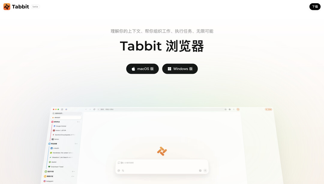 目前 Tabbit 已免费公测,支持 macOS 和 Windows,国内用户可访问https://www.tabbit-ai.com/下载,海外用户可访问https://www.tabbitbrowser.com(两版本功能一致,仅内置模型不同),不用邀请码,下载即能用。