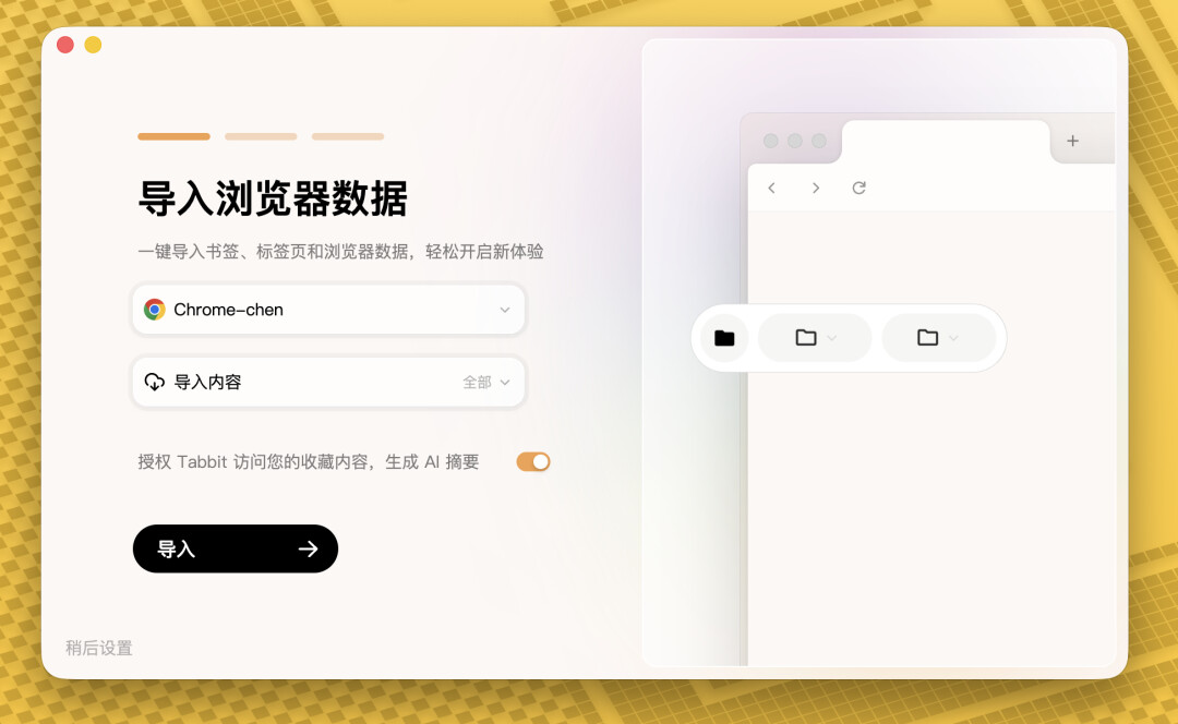 Chromium 内核加持:完全兼容 Chrome 的插件、书签、密码、浏览记录,首次打开即可一键迁移,Chrome 能做的事 Tabbit 全能干,甚至连插件都能直接安装使用;