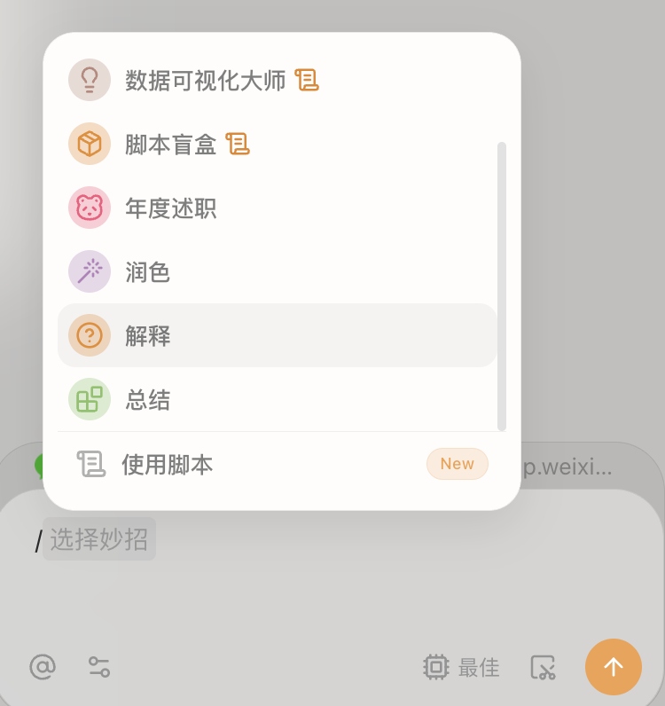 “妙招” 是 Tabbit 的效率核心,本质是把高频 AI 操作封装成快捷指令,输入 “/” 就能调用,三种类型覆盖不同需求,门槛极低却实用性极强: