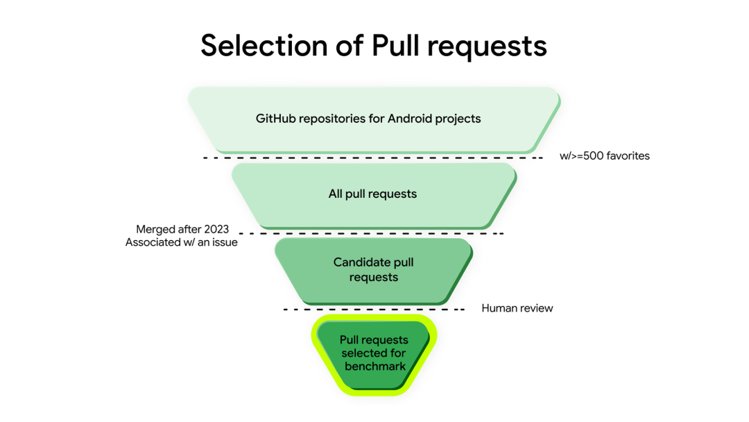 Android Bench 的测试任务并非随机选取,而是从 38,989 个 GitHub Pull Request 中,经机器筛选 + 两轮人工审核,最终确定 100 个核心任务,覆盖 Android 开发的主流场景与技术热点: